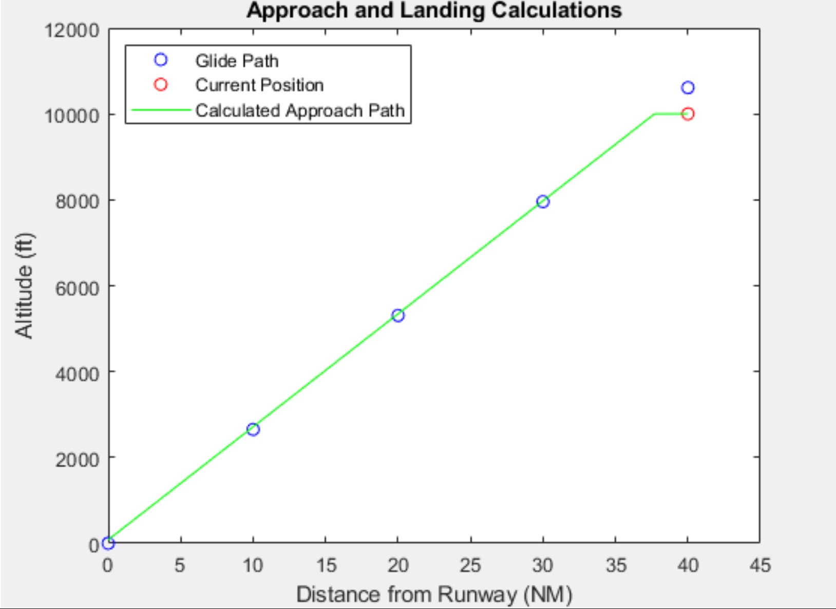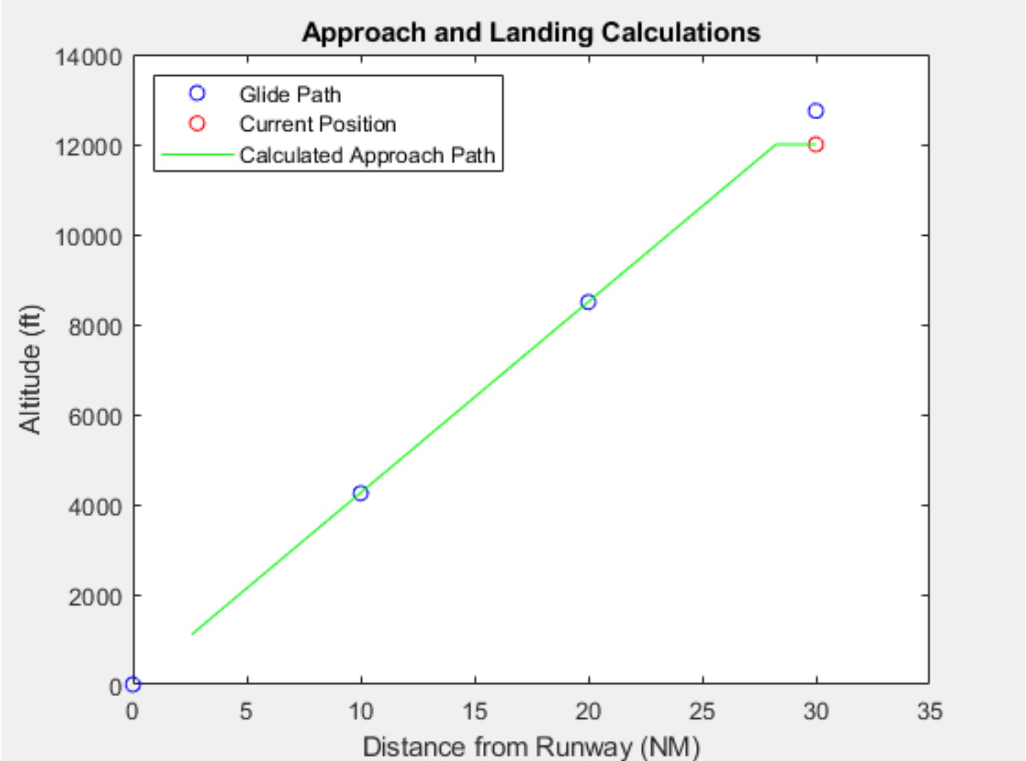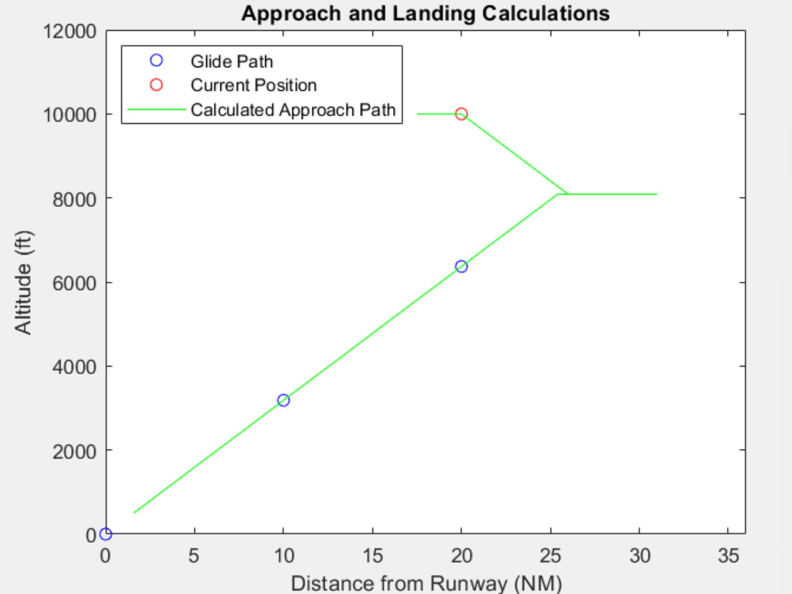 • If an optimal glide slope is found, the program initiates final approach begins generating a descent profile following the glide slope